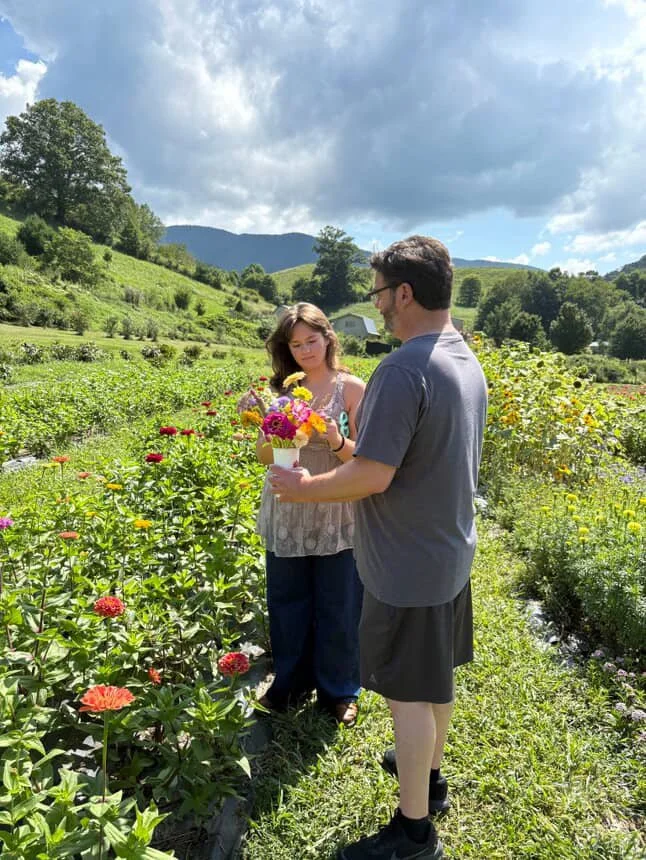 We invite you to tour our flower fields nestled in the Appalachian Mountains! Join us for a You-Pick Flower event where you cut your own farm fresh flowers and make a bouquet to take home. This is a great experience to share with family - including children, friends or a significant other. You can also keep it simple - come solo and enjoy the quiet. Our hope is that you find inspiration and peace while surrounded by the beauty of Springhouse Farm.